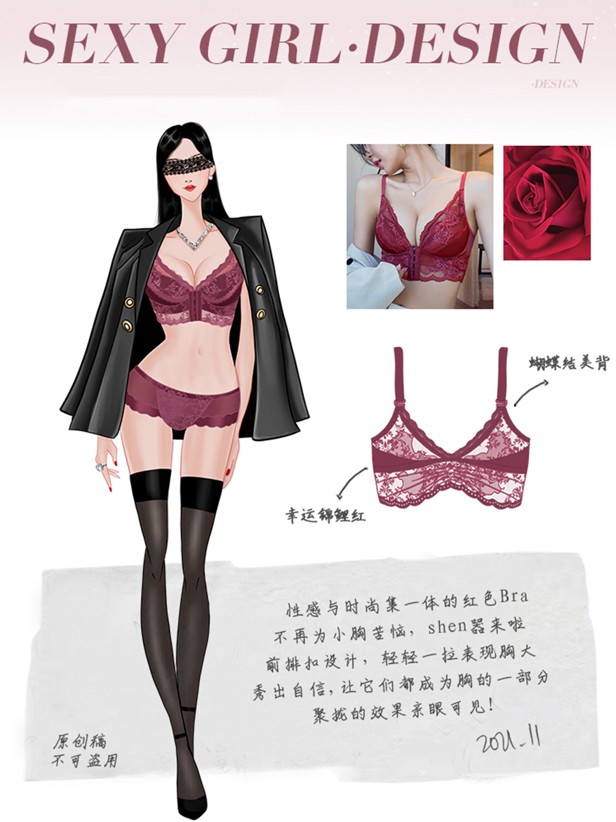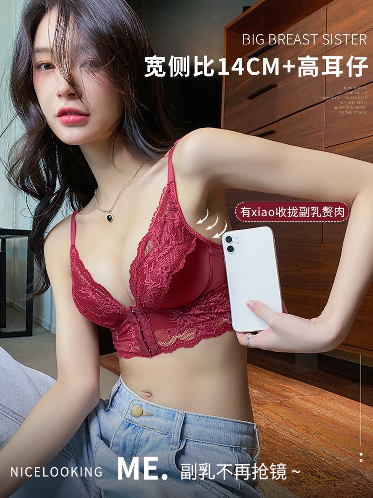 Wei Mi Yu no steel ring adjustable underwear women's small breasts gather on the front button bra red wedding underwear set