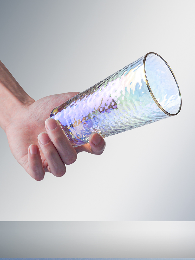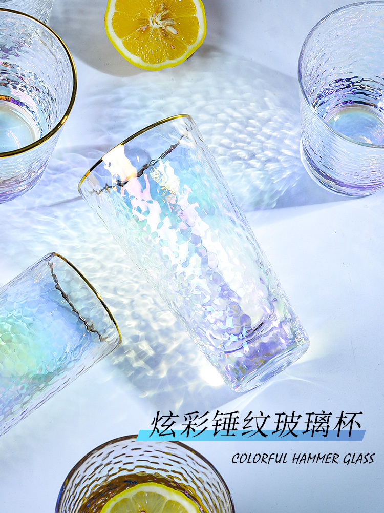 High temperature resistant color hammer pattern wind simple laser dazzling Phnom Penh seven men and women glass cup water cup color home ins