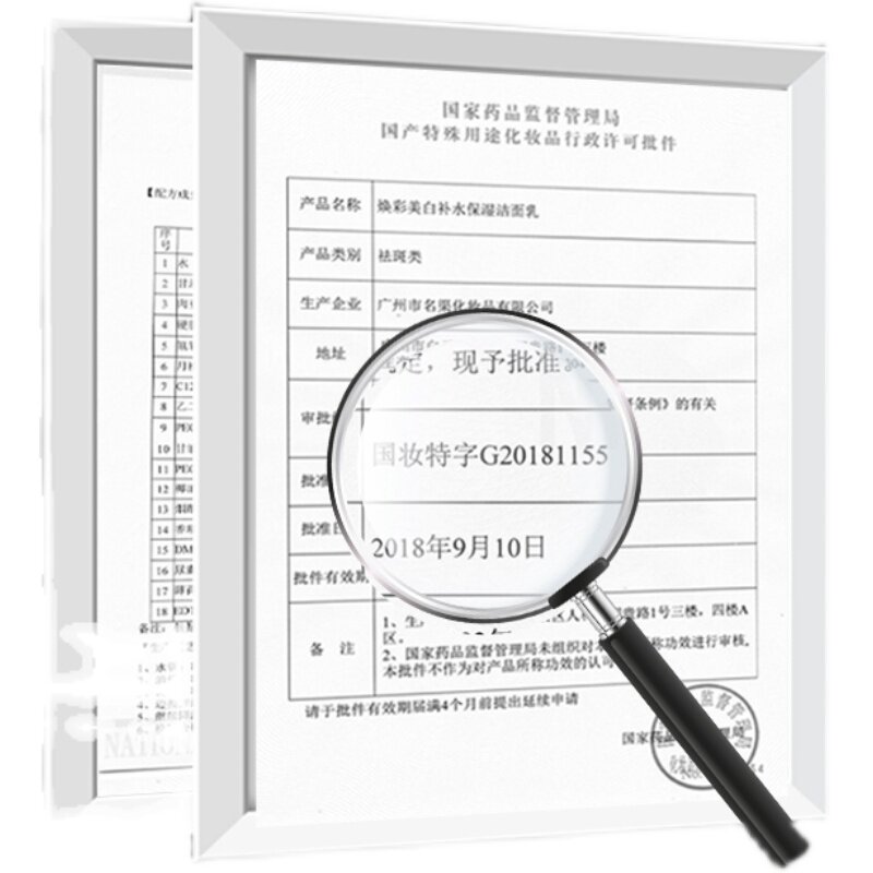 Cosmetic record number registration certificate: