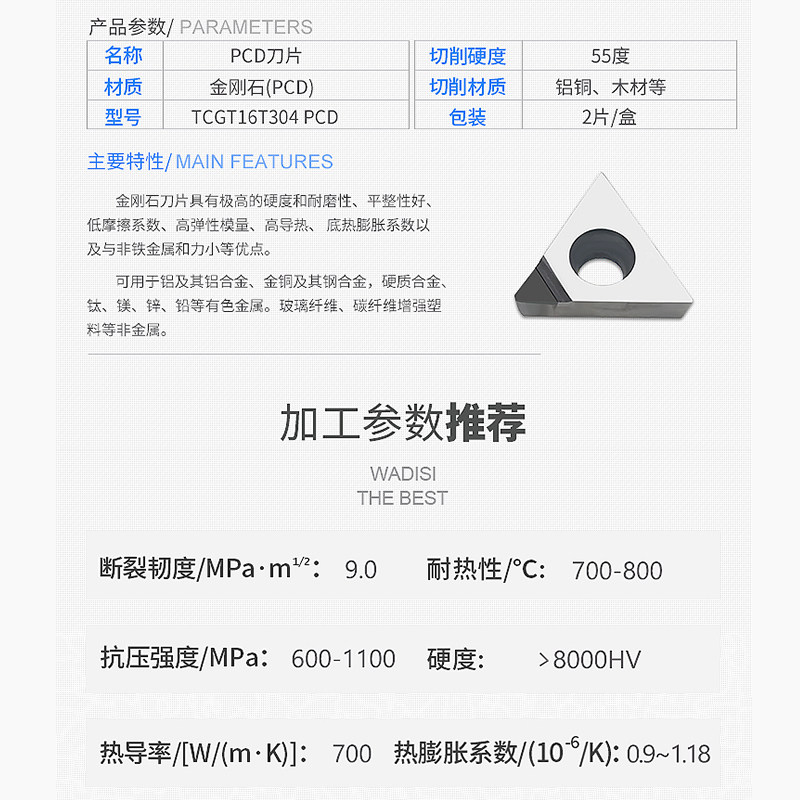 Diamond Blade Triangle Diamond Head TCMT TCGT16T304 16T302 16T308 PCD CBN