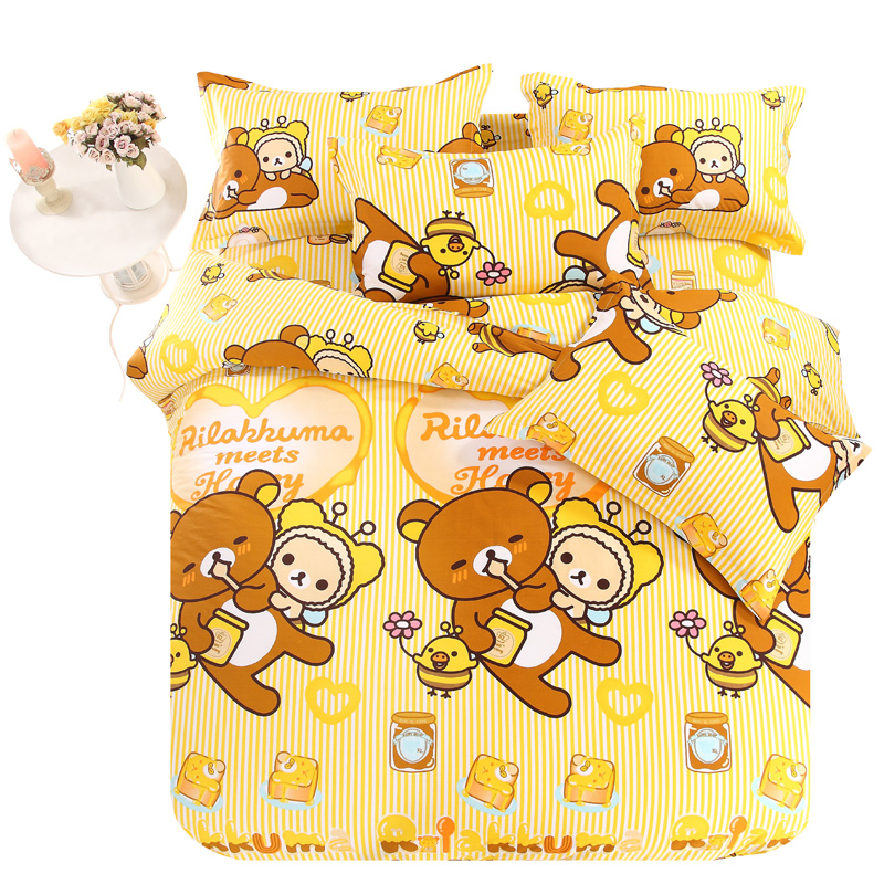 Total Cotton Cartoon Bed Linen Single Pieces Children's Bed Hood Pure Cotton Dorm Room Single Double Step Up Bed Linen Quilt single New pint bed linen