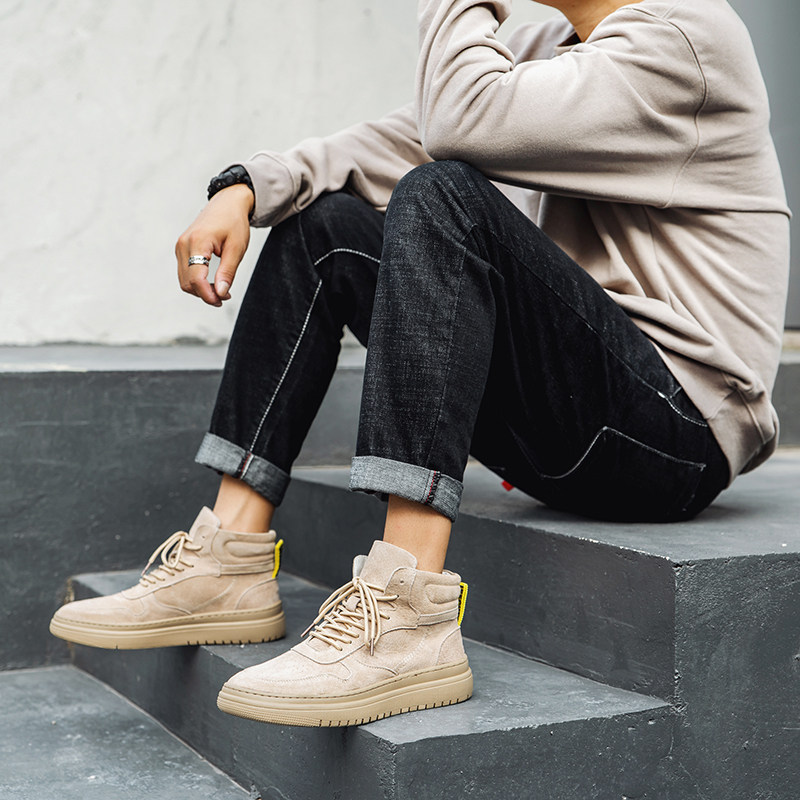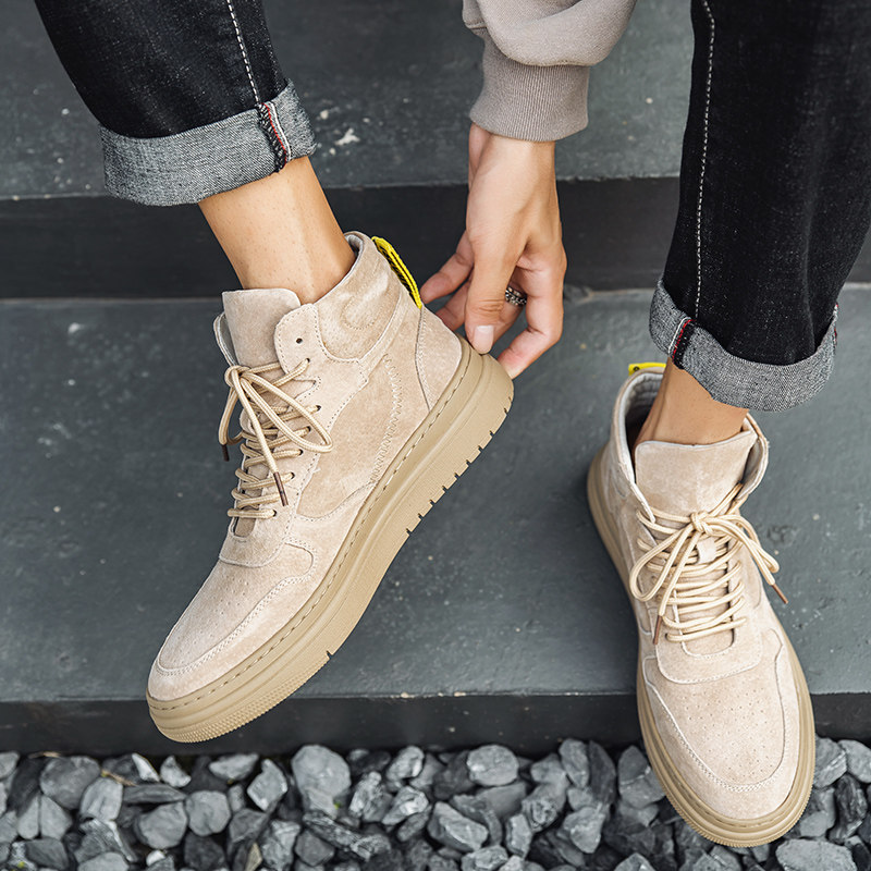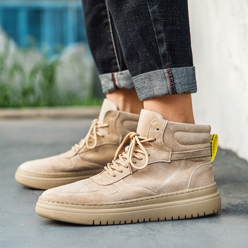 Spring and Autumn Net Red Martin Boots Men's Tall Plate Shoes Tooling Gao Bang Shoes Retro Short Boots Leather Thick Sole Mid-tube Tide Shoes