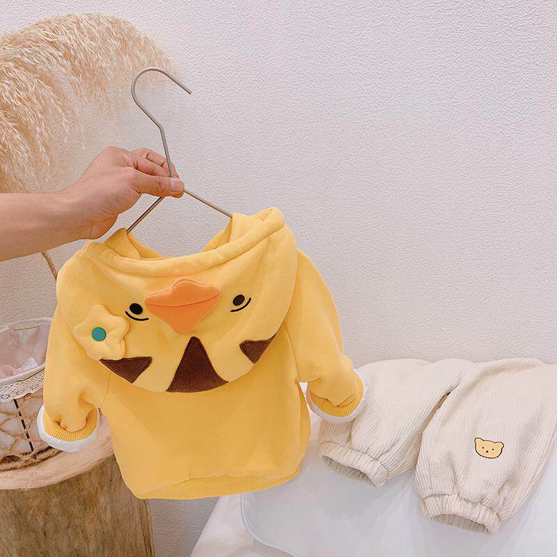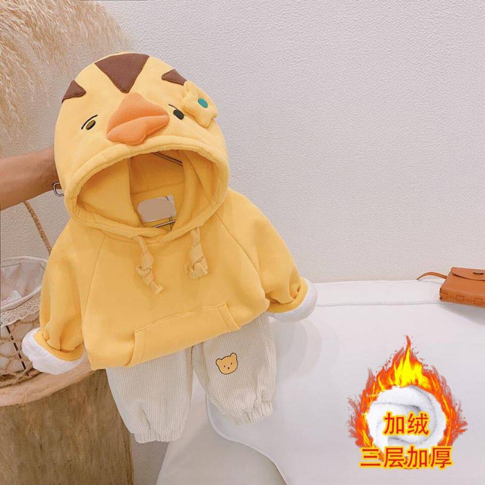 Children's clothing Girls autumn and winter plus suede thickened cotton T Korean version of children Yanist blouses The baby Katong Lianlian hat warm jacket