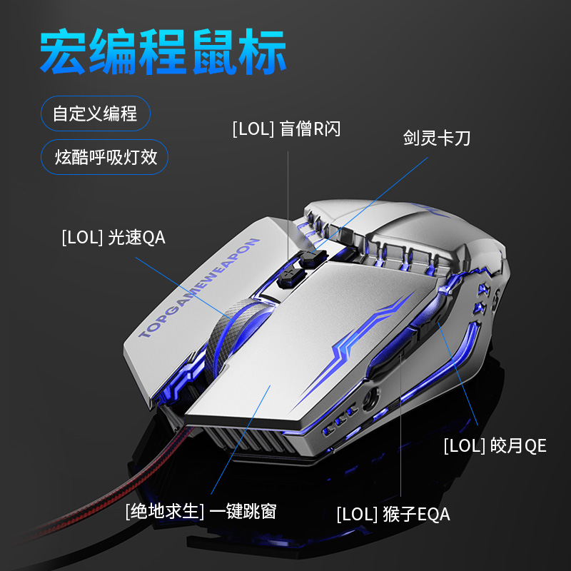 (AOC) professional electric race slide rat cable real mechanical game macro slip rat mute notebook eating chicken cross firing line CF press gun external device Home lol Internet cafe desk-style computer office universal