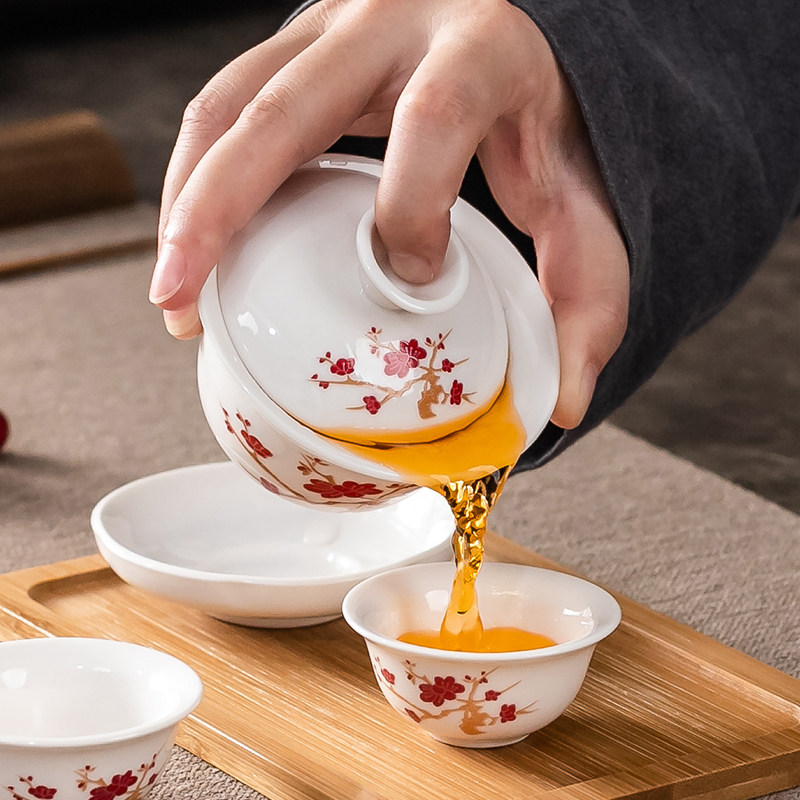 Creative Ceramic Kung Fu Tea Set Suit Home Brief About Small Set White Porcelain Tea Set Cover Bowl Tea Cup Travel Portable Bag-Taobao