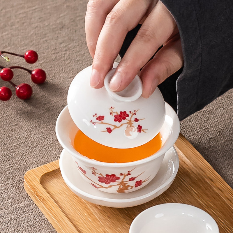 3 pieces of cover bowl-jade and shadow lotus flat pressure plate 3 pieces cover bowl-show Lie landscape flat pressure plate black pack 3 pieces cover bowl-Cuelo green Hsinchu flat pressure plate black pack 3 pieces cover bowl-calligraphy Don
