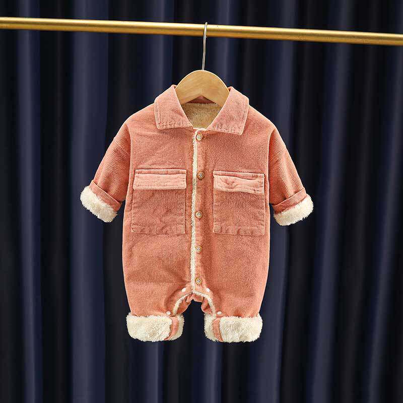 Baby autumn and winter jumpsuits go out thickening baby plus velvet jacket men and women tooling rompers newborn tide clothes winter