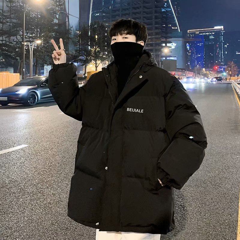 Men's cotton clothes Winter ins Han version Trend cotton padded jacket with velvety thickened cotton clothes Even hat jacket male loose bread suit