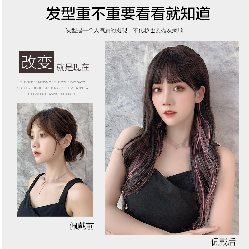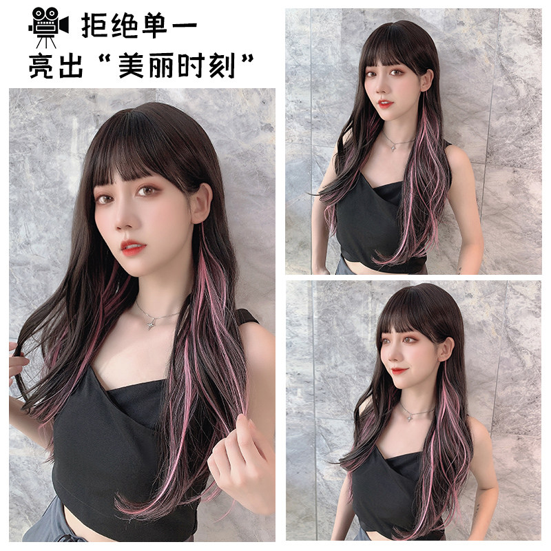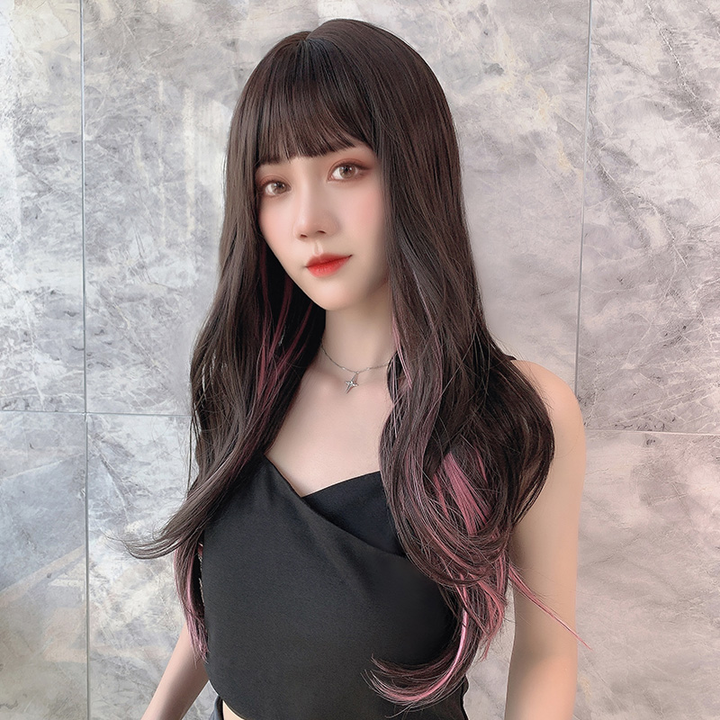 Wig female hair full hair dyes long curly hair net red air browsing hair simulation hair micro roll ear dyed wig