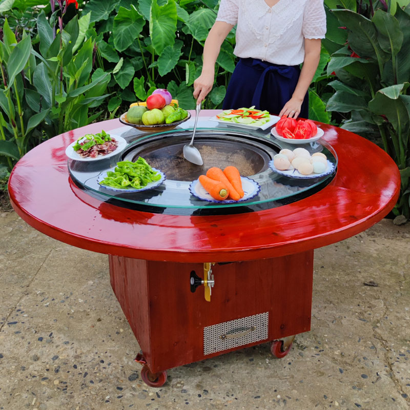 Ground pot chicken stove special turntable firewood turkey stove large pot iron pot stew stove table drilling hot pot table glass turntable