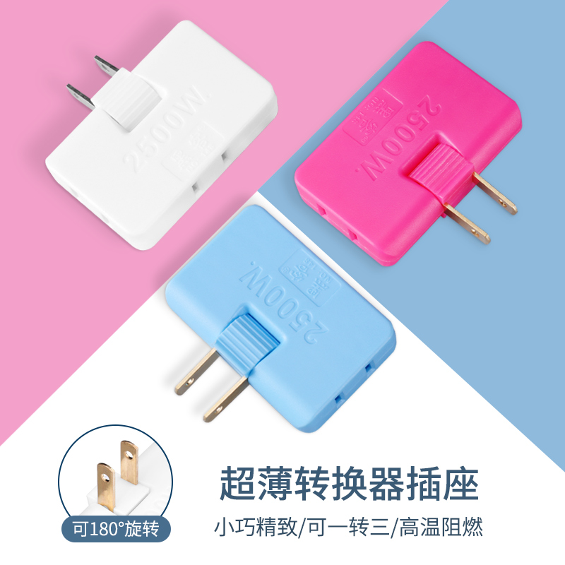 Ultra-thin 180-degree swivel socket by wall One-to-three-2 plug extension multifunction socket board converter shifter