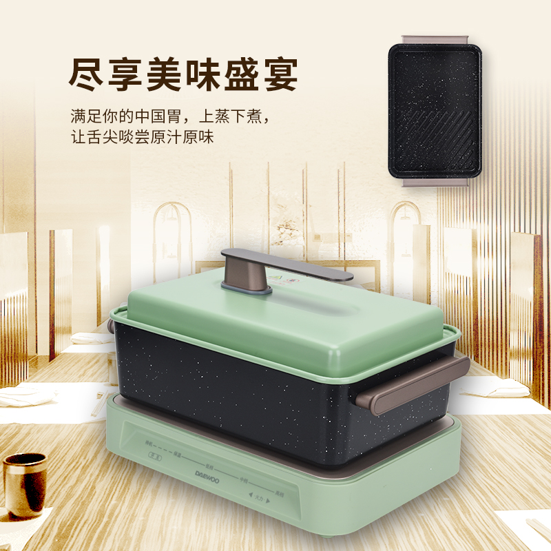 South Korea's Daewoo Multi-functional cuisine pot Home barbecue grill Barbecue Machine electric hot pot fried frying and boiling and baking integrated pan