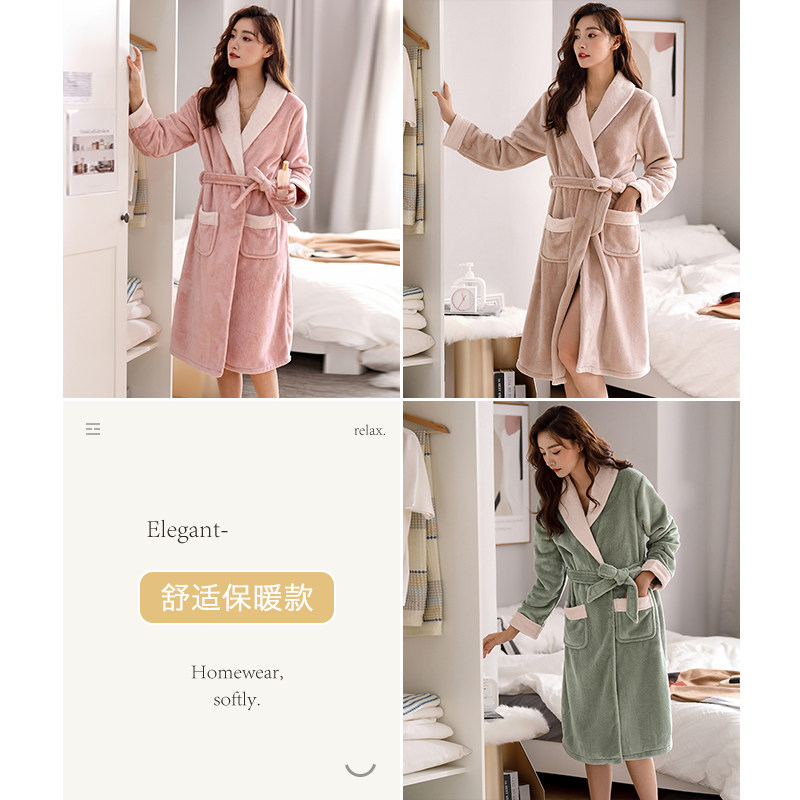 Sleeping robe ladies sleepwear autumn winter coral velvet thicken plus suede warm flange suede long version bathrobe home clothes