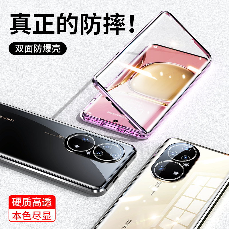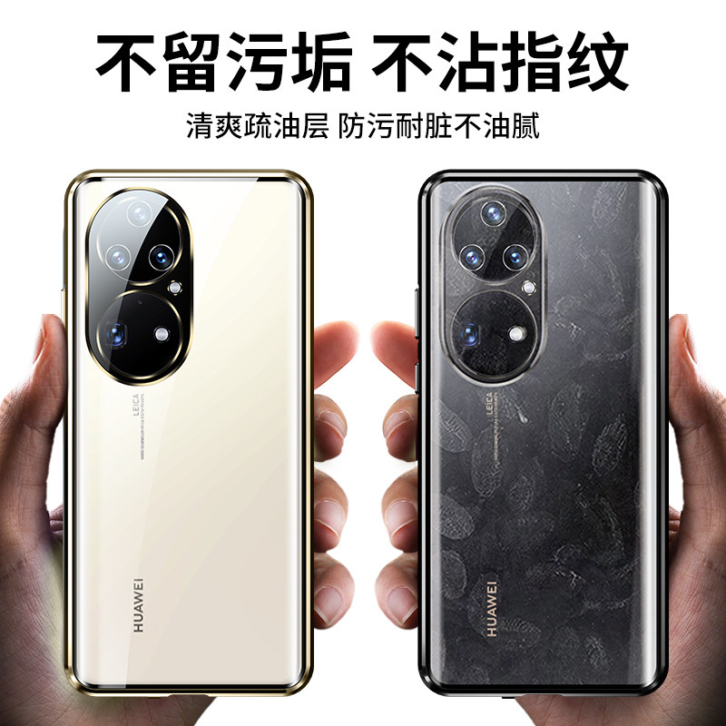 Applicable Huawei p50pro mobile phone protection shell p50 mobile phone protective sleeve double face glass new magnetic protective sheath por full bag anti-fall transparent ultra thin male and female lens new product curved screen steel upscale net red
