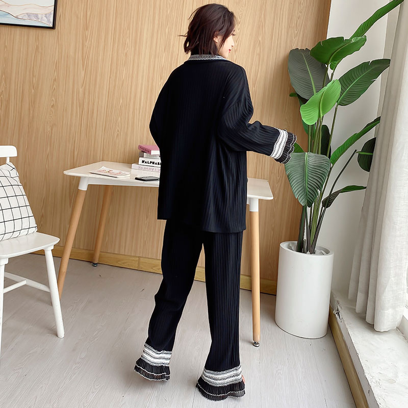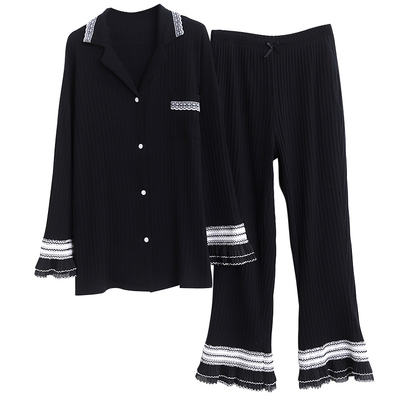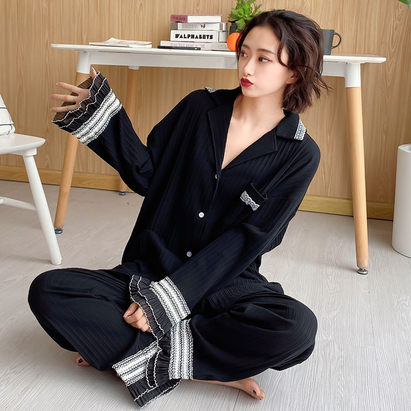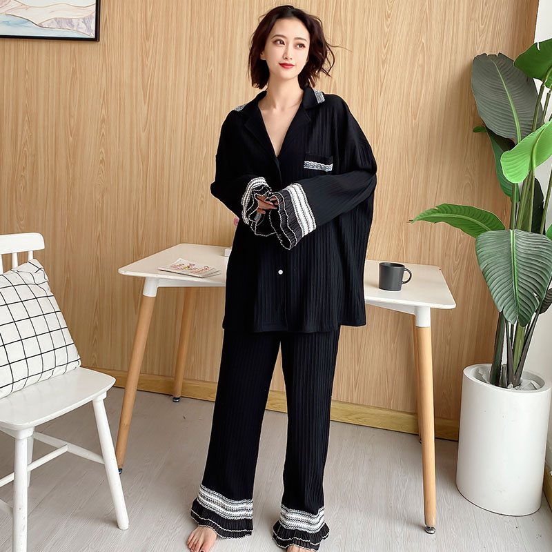 Large size pajamas women's 200 jin autumn 2022 new style plus fertilizer to increase cotton black home clothes fat mm spring and autumn