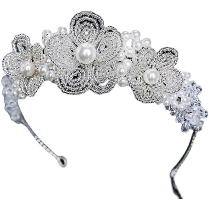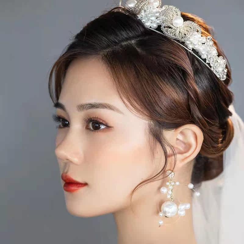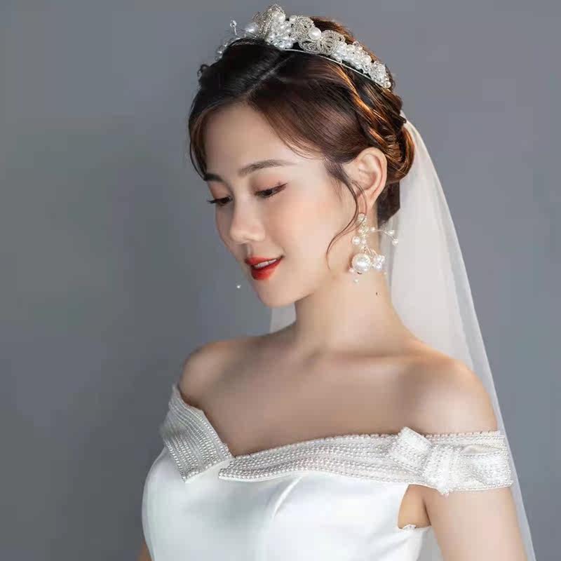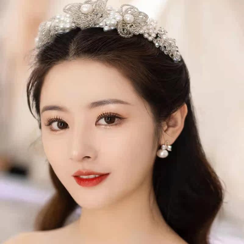 Korean bride wedding headdress Crown sweet beaded fairy Bride and makeup accessories Birthday banquet dinner princess