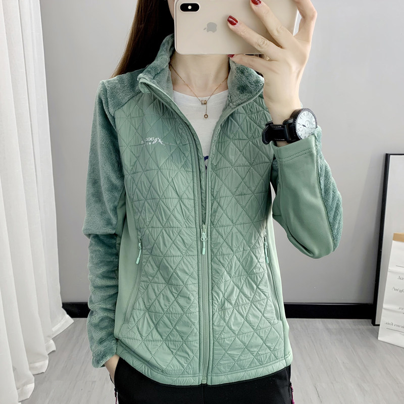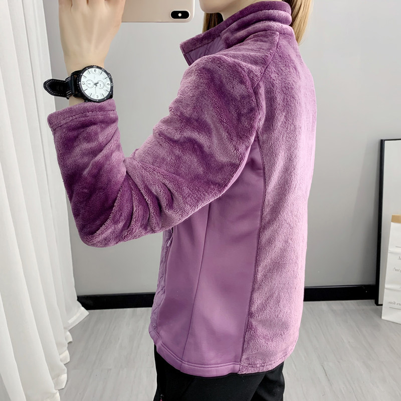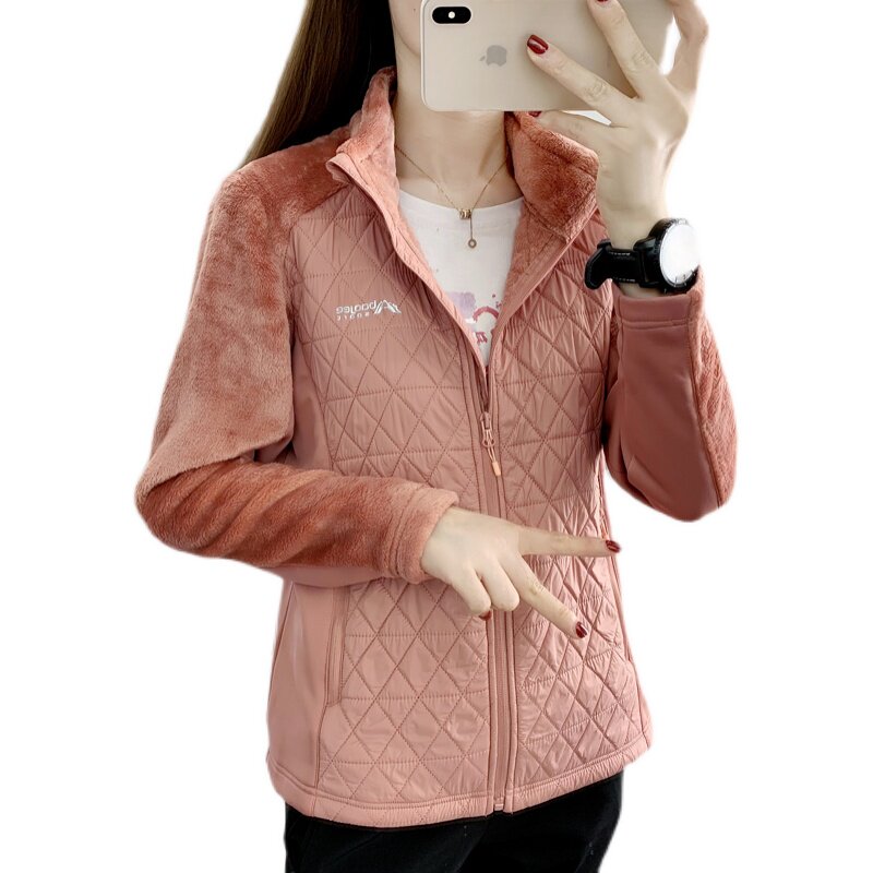 Outdoor Grip Suede Jacket Woman Style Plus Suede Thickened Warm Autumn Winter Upright Collar Cardiovert Cotton T Spliced Rocking Grain Suede Mountaineering Jacket