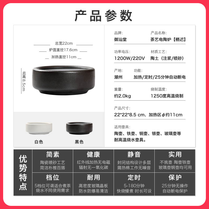 Day-Style Silent Cooking Tea Electric Pottery Stove Table Type Small Home Ceramic Tea Making Stove Iron Pot Pottery Pot Burning Water Base Can Be Timed