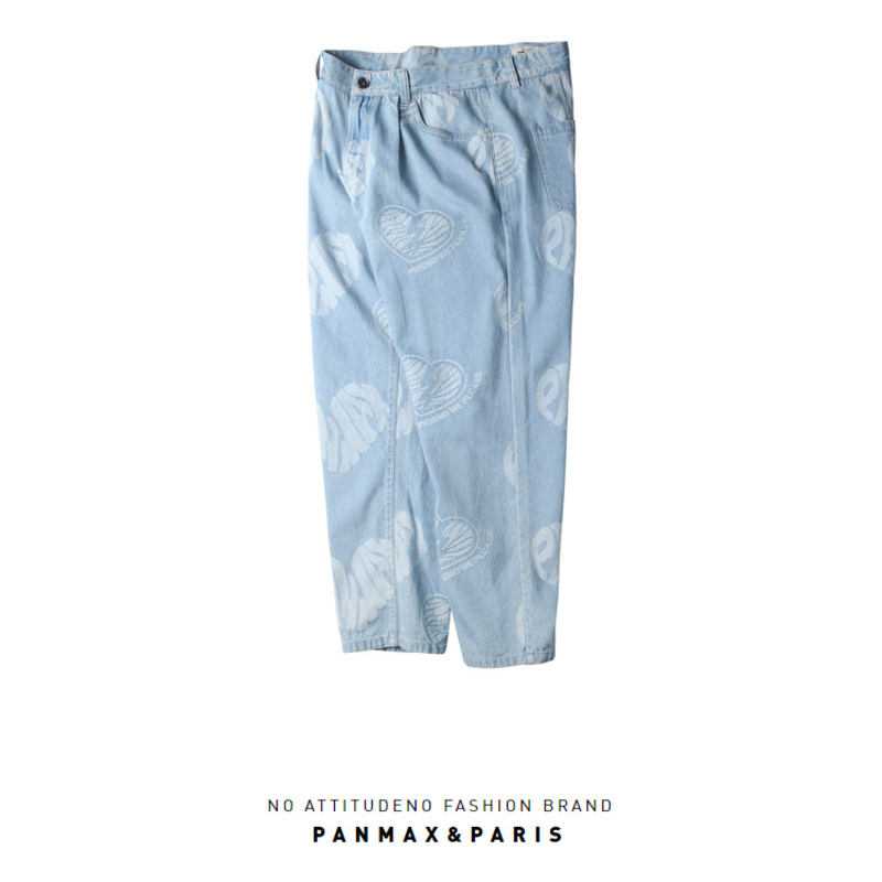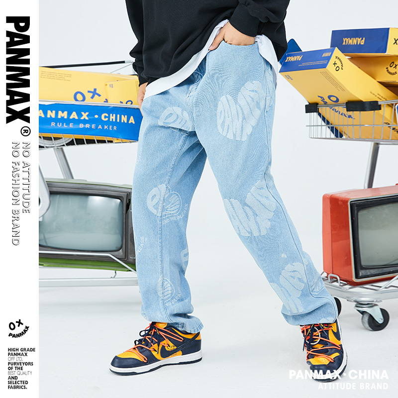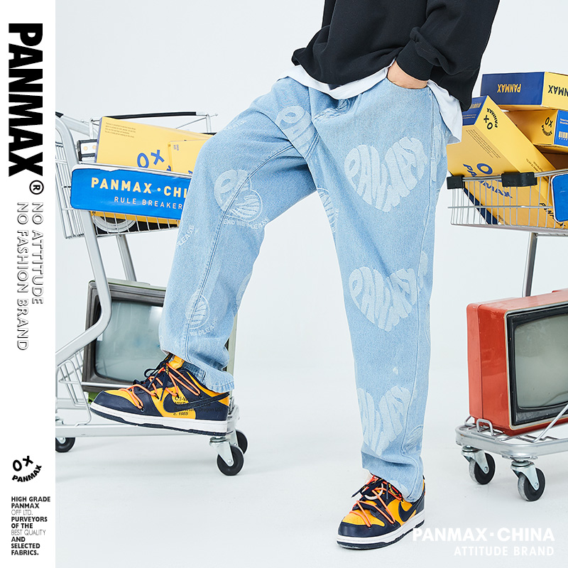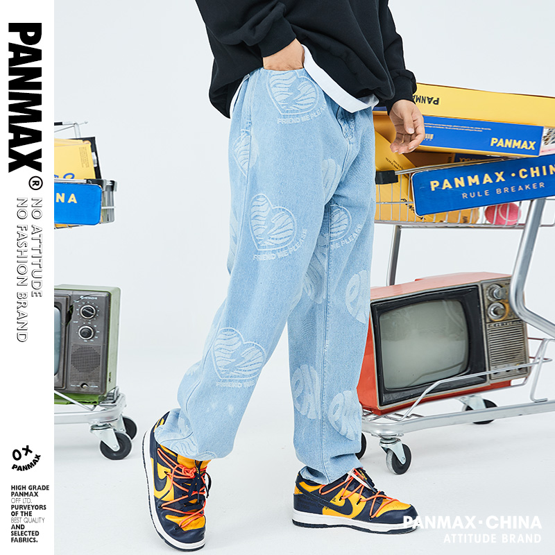 PANMAX Tide Cards Big Size Men's Straight Drum Denim Long Pants Fall Autumn New Jacquard Design Casual Pants