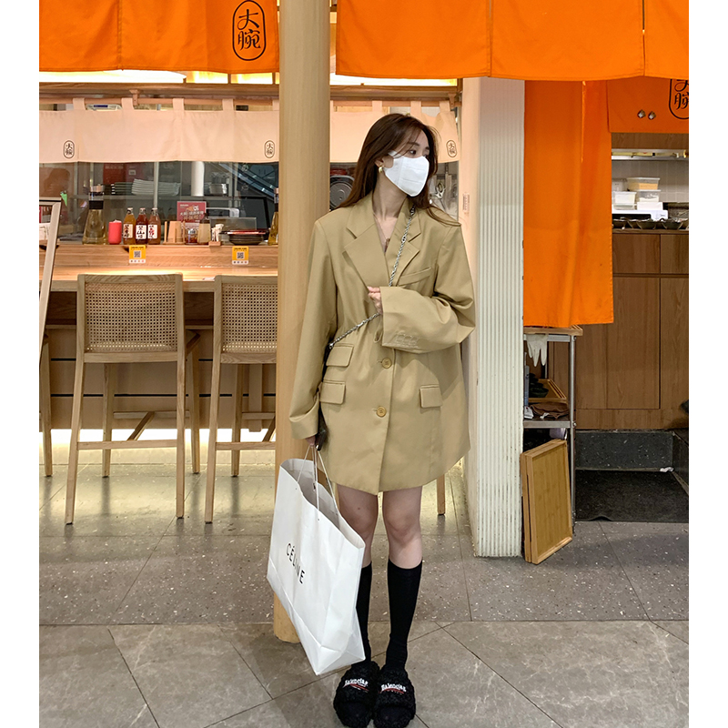 Advanced design sense card with its color suit jacket female spring autumn small sub hand stitches loose black western suit Korea