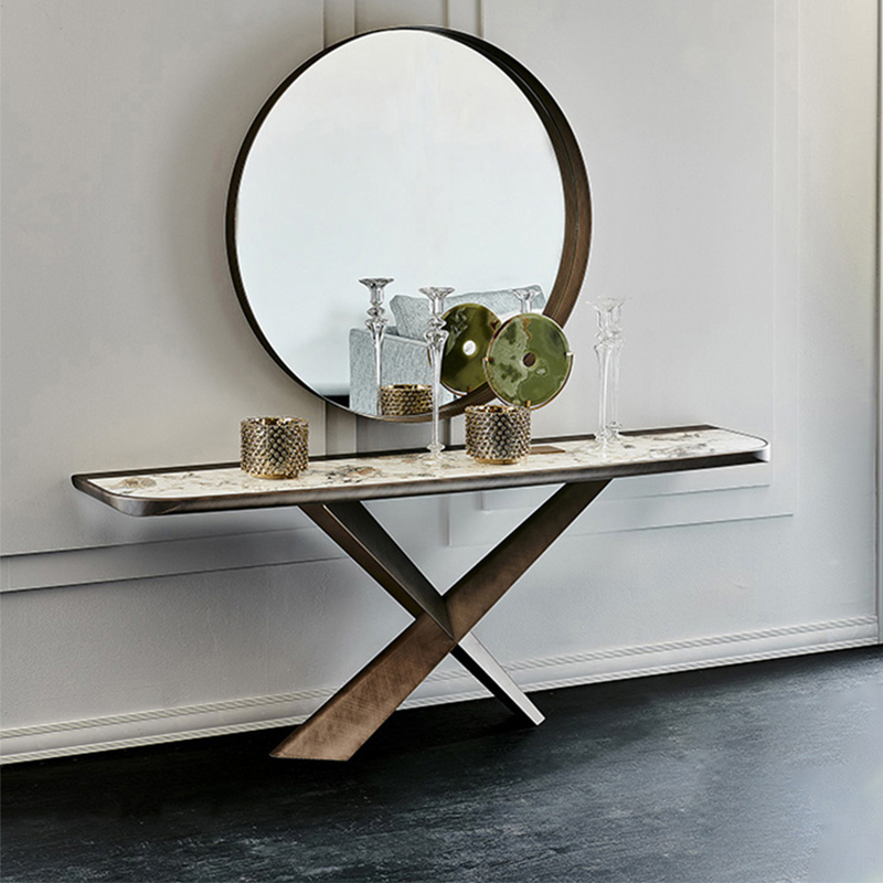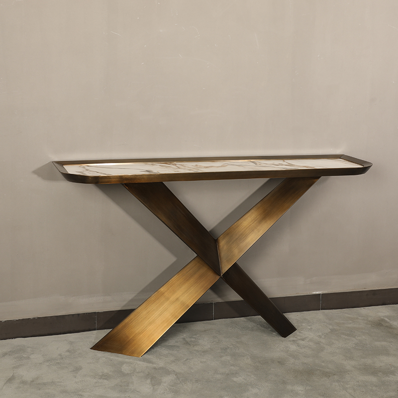 Light luxury porch table Italian style minimalist home designer style art case porch cabinet stainless steel rock plate end view platform