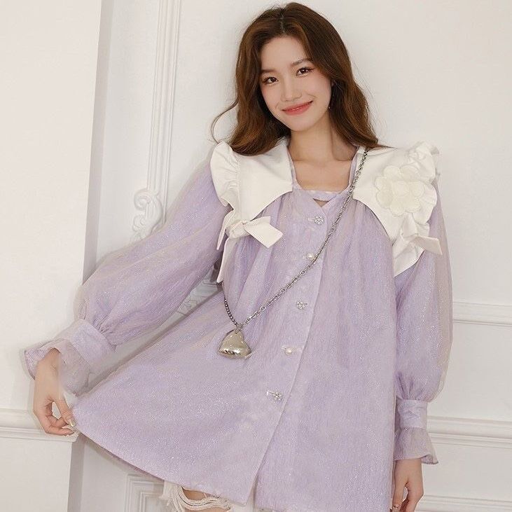 Early autumn temperament dress French sweet first love court wind design Sense small sleeves fleeing princess bowed