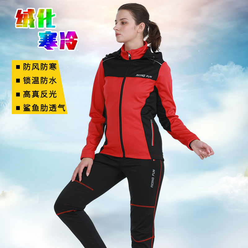 Autumn and winter cycling clothing top men and women fleece long-sleeved thermal cycling clothing windproof and rainproof mountain bike equipment customization