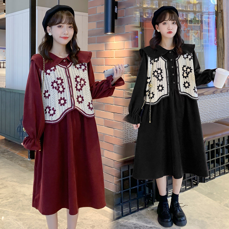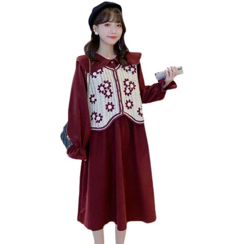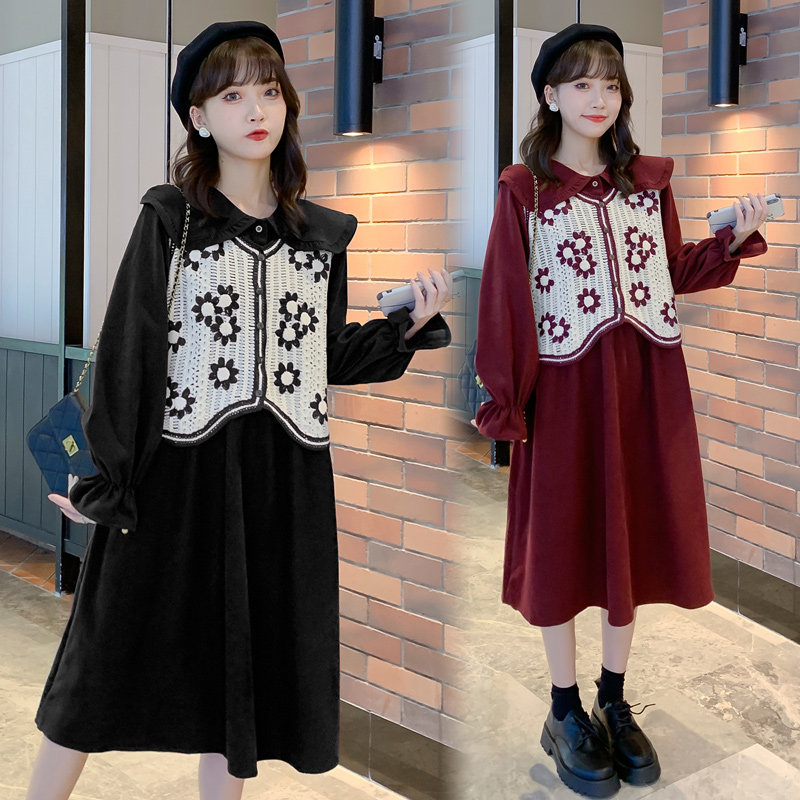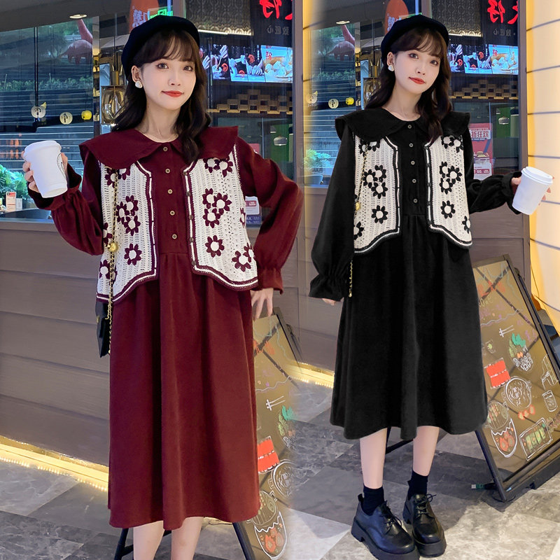 Autumn new Korean version of large size maternity dress sweet two-piece dress retro waistcoat doll skirt fashion suit