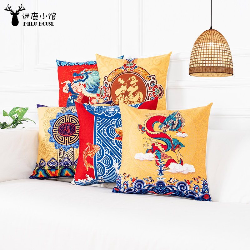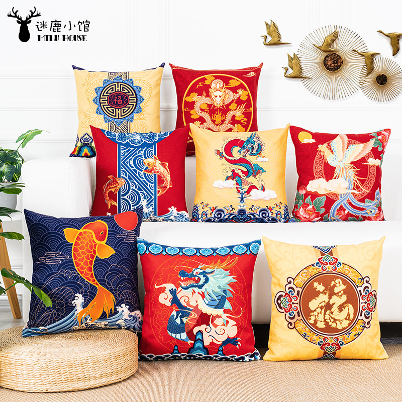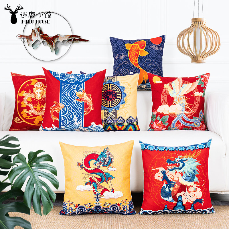 Chinese-style pillow Dragon Fengguo Guoxiang wind rely on wedding red pressed doll cushion can be removed bed head and pillow pillow