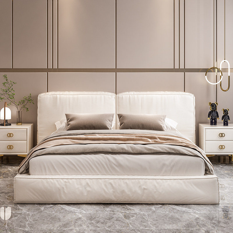 Calera Nordic leather bed Modern minimalist headroom Real Bed Leather Art Bed Ins Nets Red Light Extravaganza Innate Wind Bed
