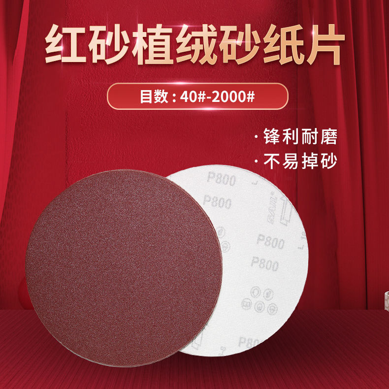 Flocking Red Sand 5 Inch 4 Inch 7 Inch 9 Inch Flocking Disc Sand Paper Sheet Back Suede Sand Leather Paper Plush Polished Sheet Self-Adhesive