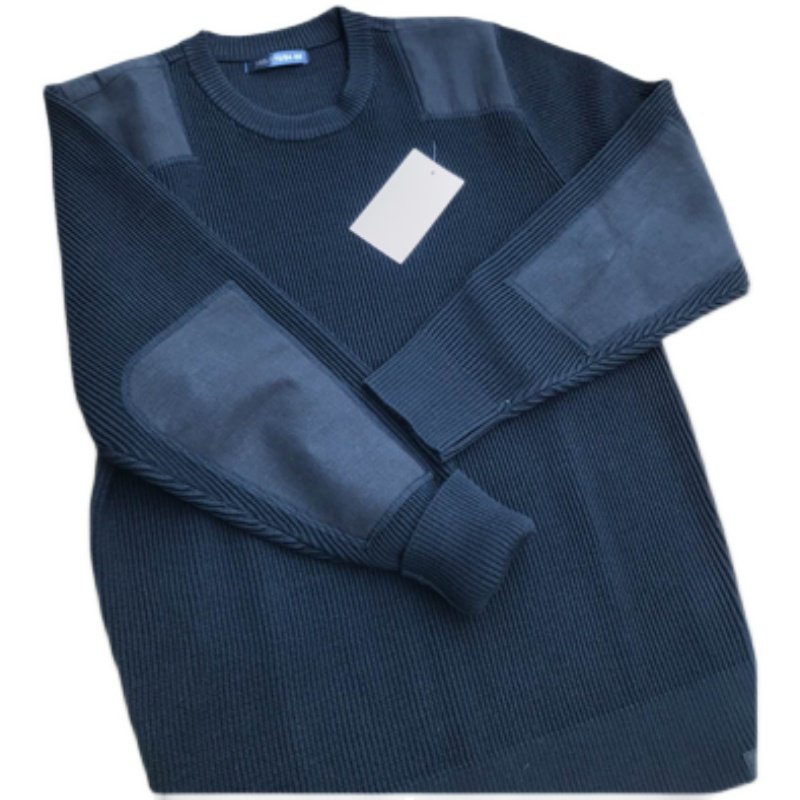 Memories of the Past Outdoor Olive Green Round Neck Pullover Navy Blue Pure Wool Single Top Casual Cashmere Sweater