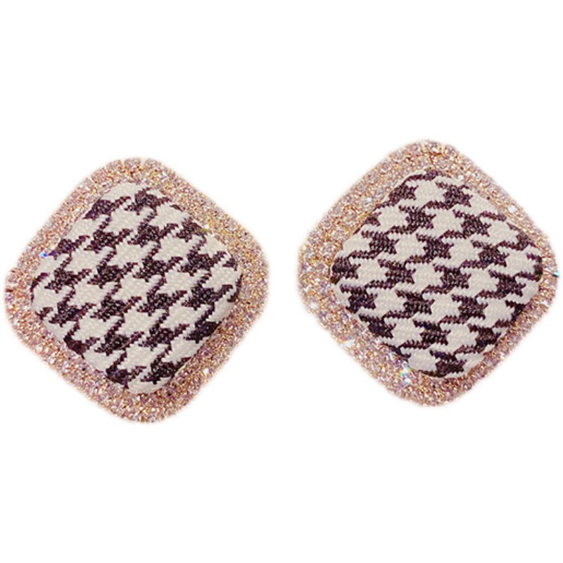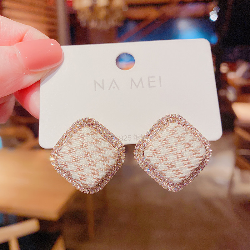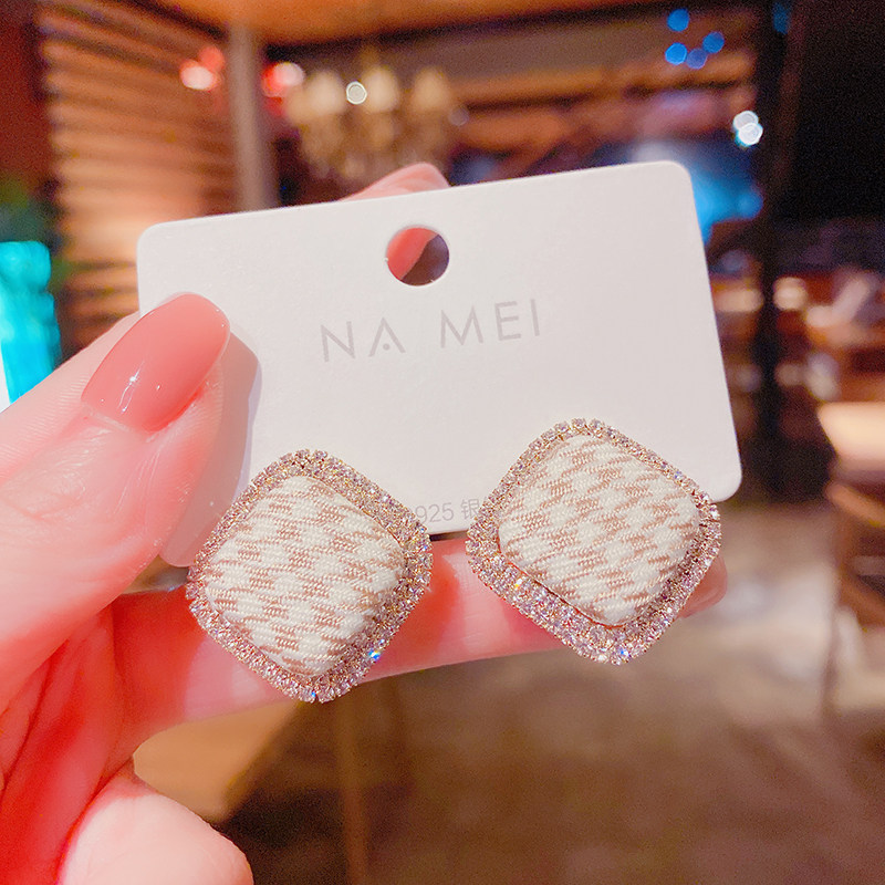 Korean houndstooth cloth art square earrings women's 2023 new autumn and winter noble earrings s925 silver needle earrings