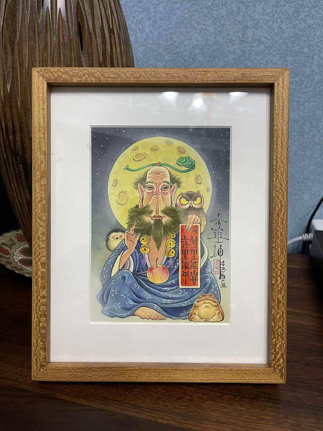 Scum Bear Original Zen toad Office Home Art Microspray Decoration Painting Night Shift God Table Swing Teak Wood Frame