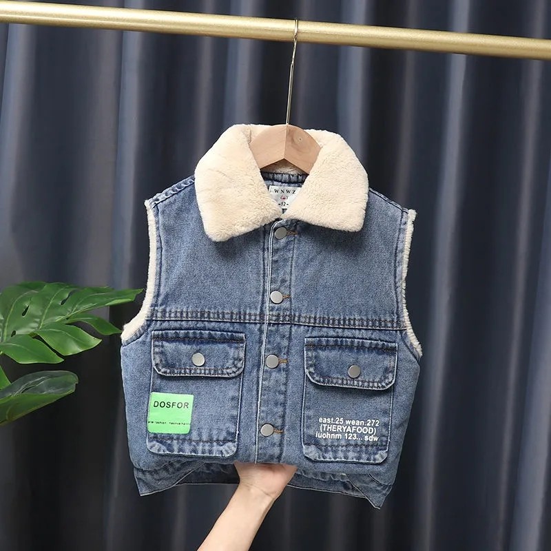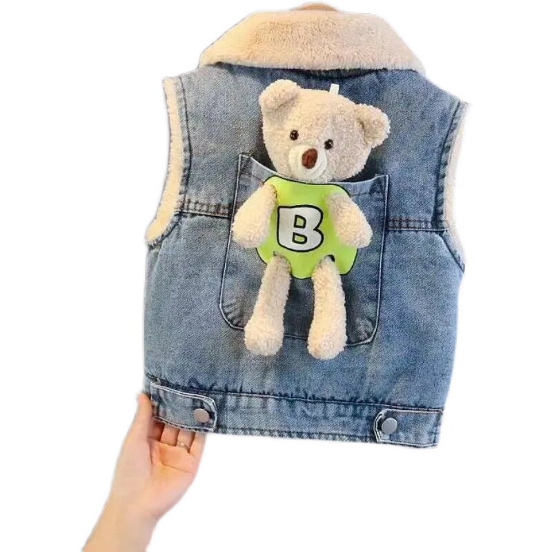 Small Bear (blue) - Child thickened cowboy vest small bear (black) - Child thickened denim vest