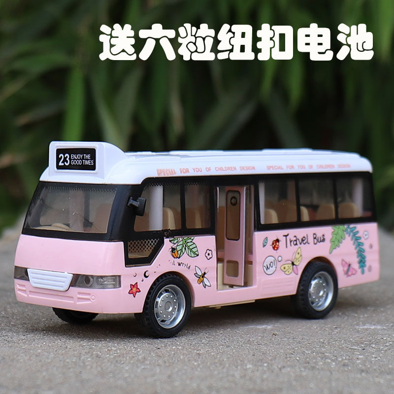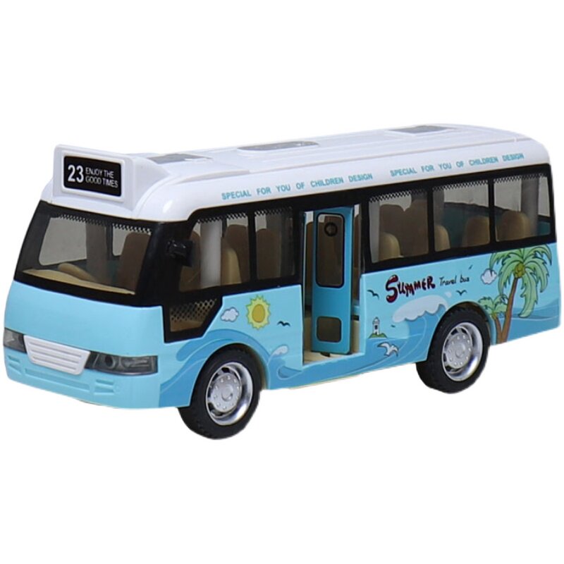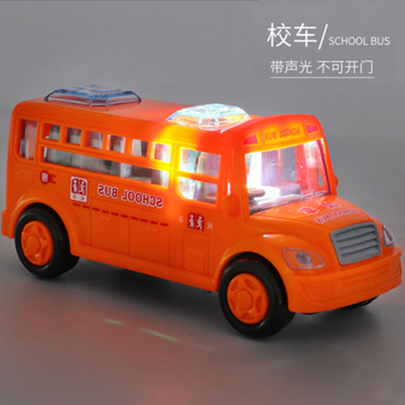 Children's sound and light bus toy car boy baby open the door bus model inertia drop resistant simulation bus