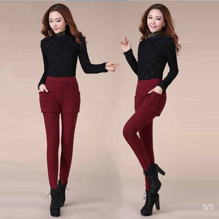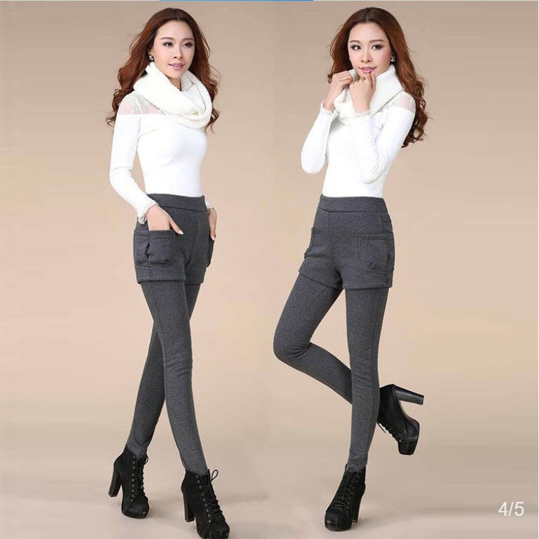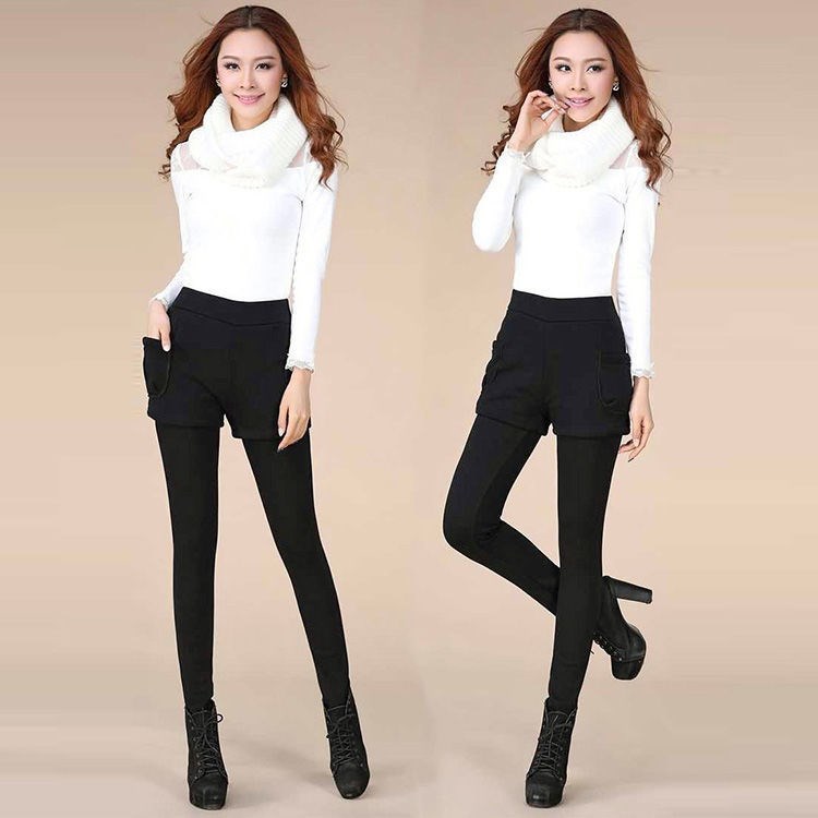New sweet and winter casual pants plus thick fake two pieces of pants and pants wear high waist trousers and elastic fit