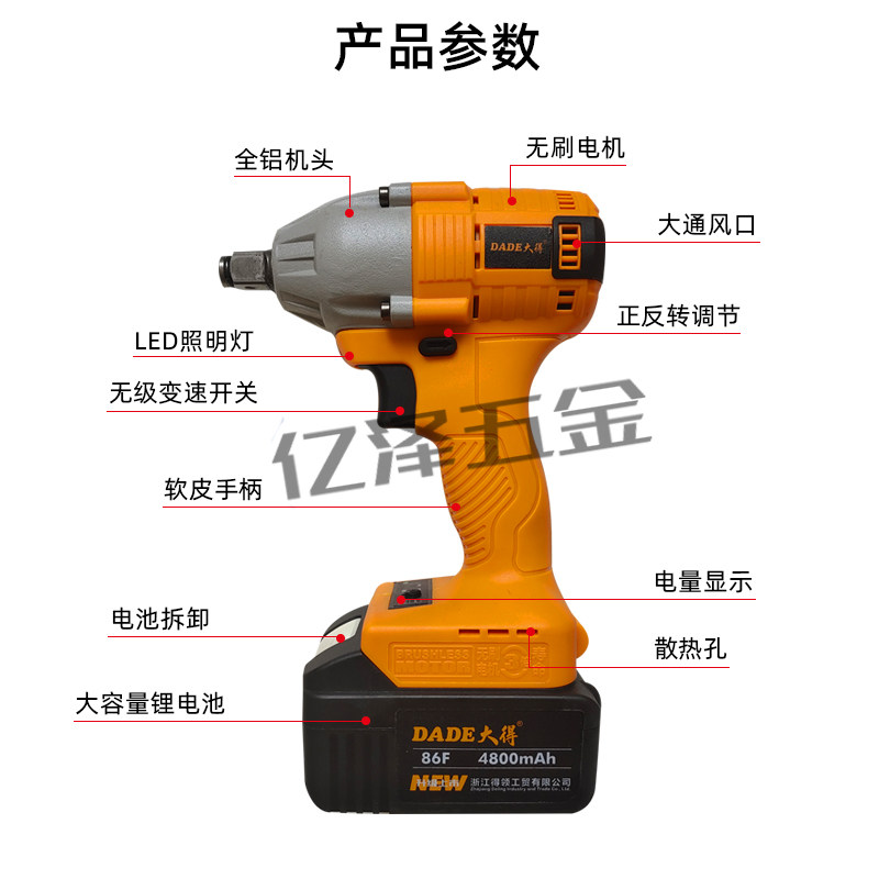 Dade original brushless electric wrench 86F lithium battery impact wrench 118F little brother 118F bare metal head set
