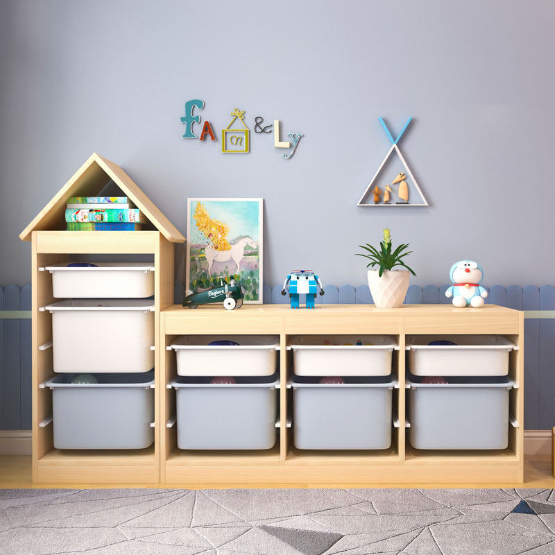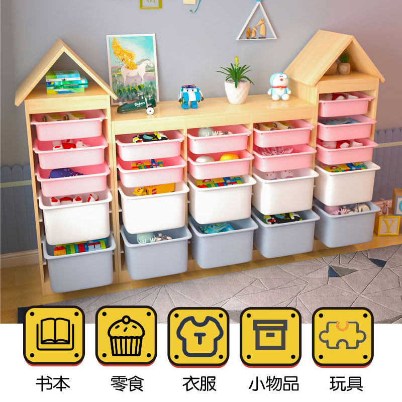 Solid wood baby toys hold the locker children's bookshelf cabinet large capacity to organize induction rack multilayer shelf