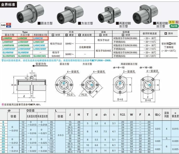 Double-lined linear bearing intermediate flange LHMSW6 8 10 12 12 16 16 20 25 30 35 35 50 50