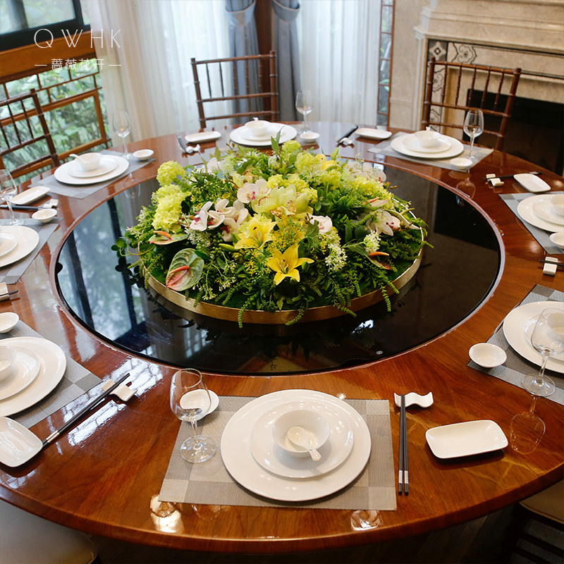 New Chinese-style hotel large round table turntable simulation flower table flower arrangement flower arrangement middle fake flower arrangement high-end high-end