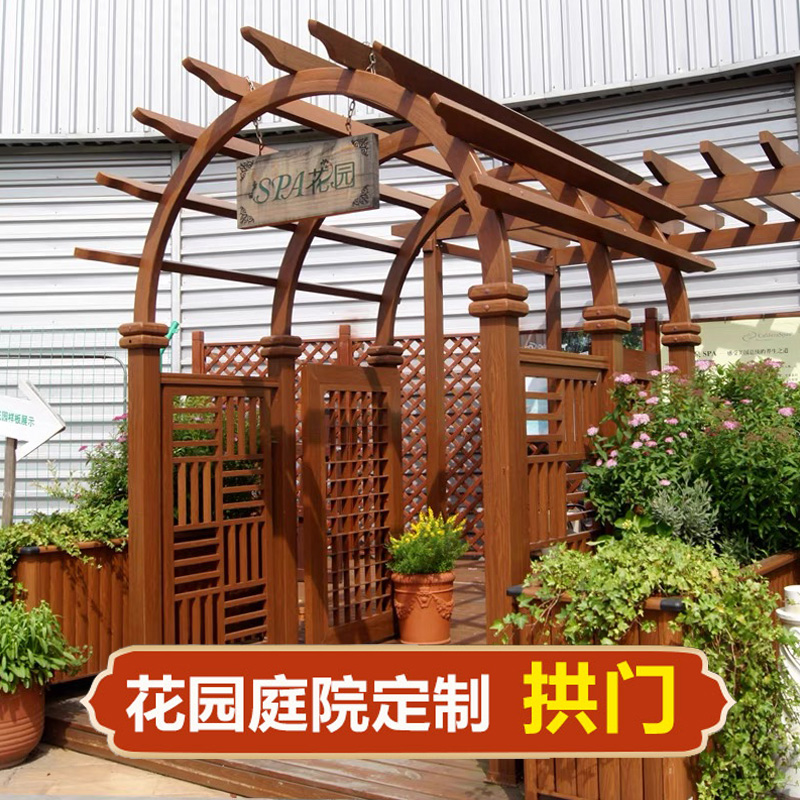 Garden anti-corrosion wood arch flower rack courtyard wooden door outdoor rose climbing pergola round arch bracket door head fence