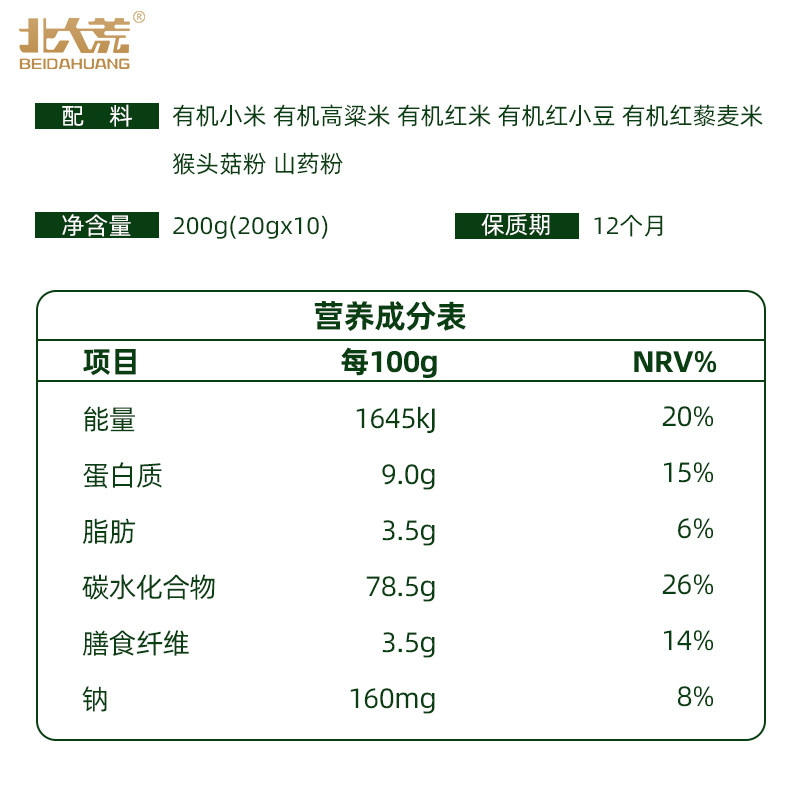Organic millet organic sorghum organic red rice organic azuki bean organic red quinoa m hou tou gu fen (3 wt%) Yam powder (2 wt%)