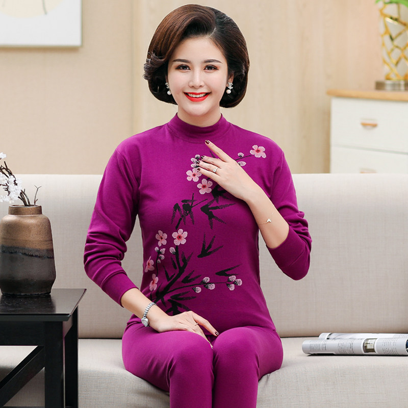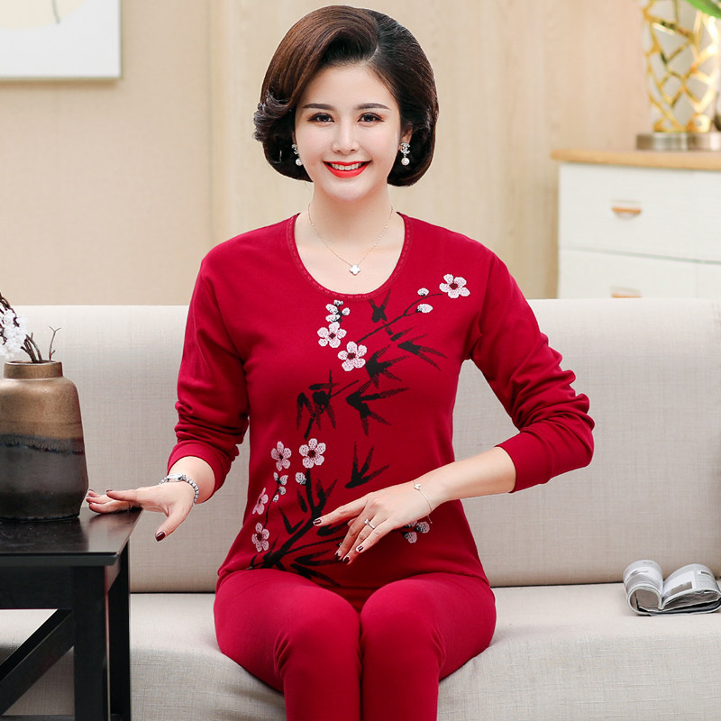 Middle-aged and elderly autumn clothes and long johns pure cotton mother's thermal underwear for the elderly thin section linen cotton sweater suit ladies new