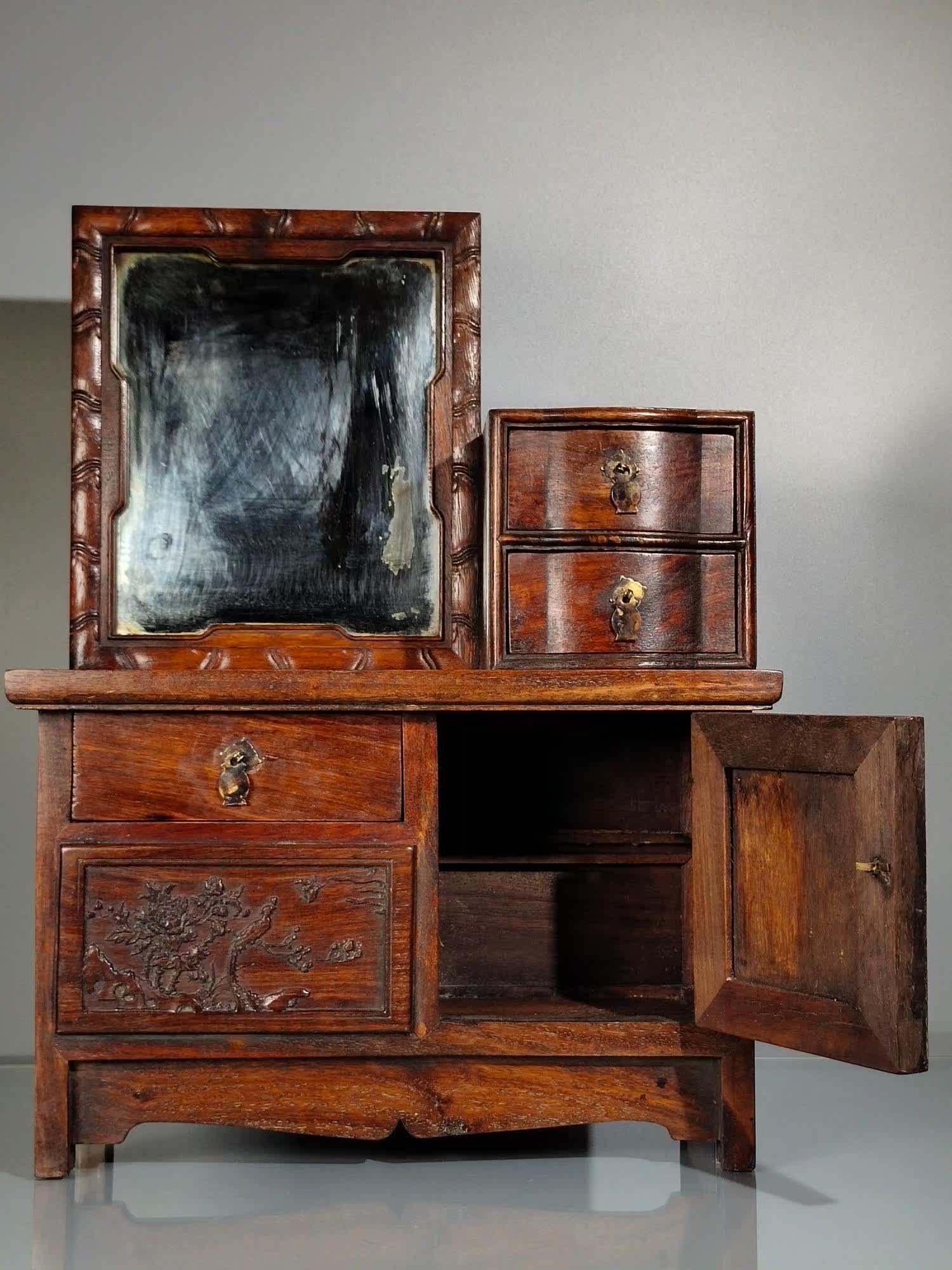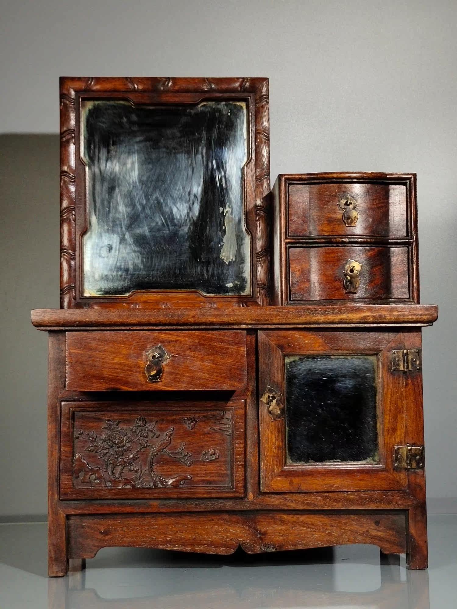 Antique Miscellaneous Collection Woodenware Collection Collection Rosewood Embossed Flower and Bird Dressing Cabinet Dressing Table Home Decoration