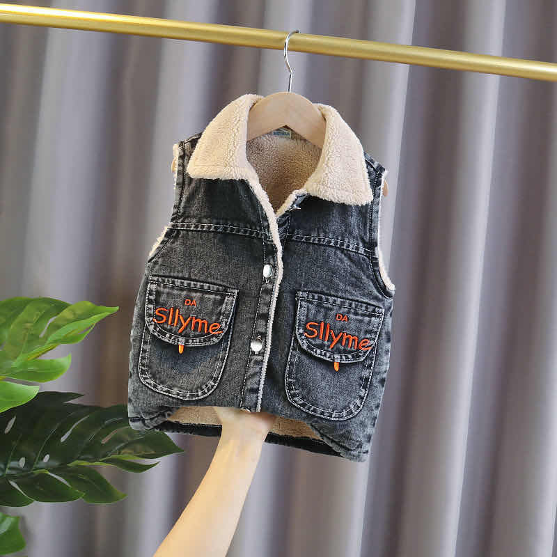 Boys autumn and winter denim vest 2022 new Western style baby plus velvet vest sleeveless jacket boy vest outside