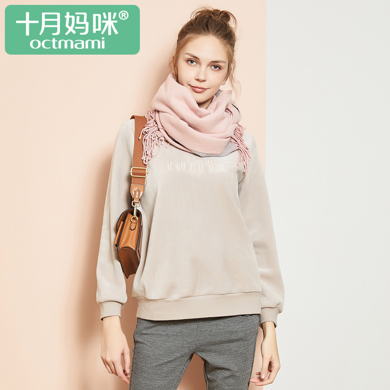 October Mommy Pregnant Women Fashion New Alloy Velvet Embroidery Pregnant Women's Sweater Soft Hundred Fashion