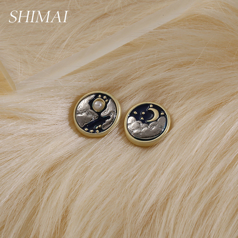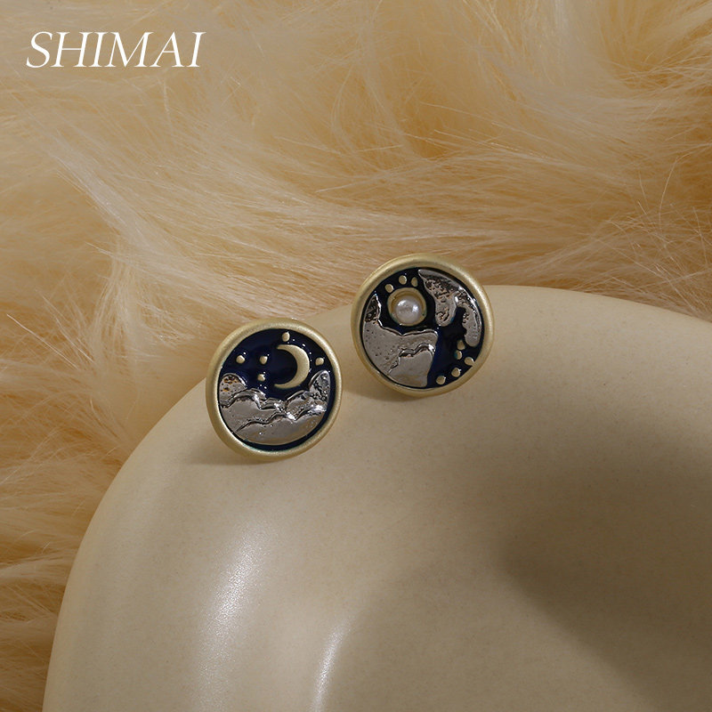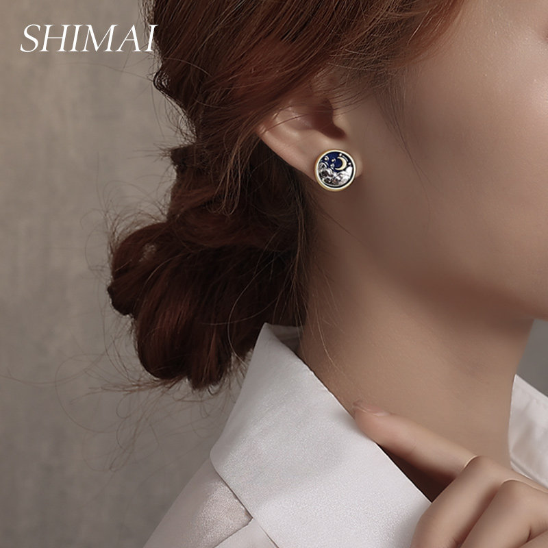 925 silver needle design sensual needle female summer moon Sun asymmetrical ear decoration small and delicate and minimalist small earrings