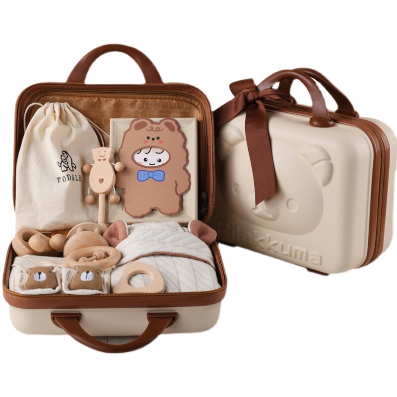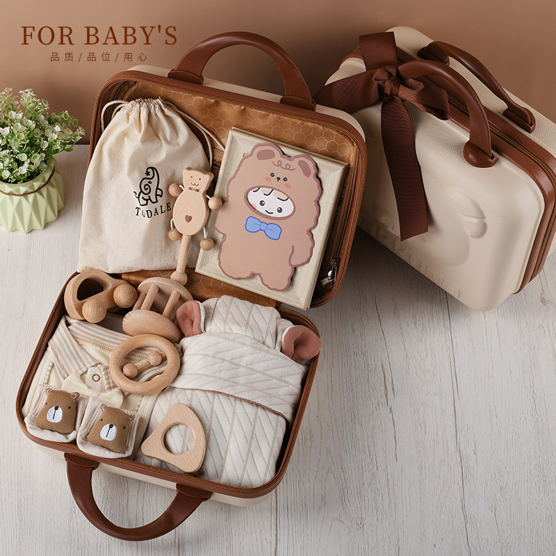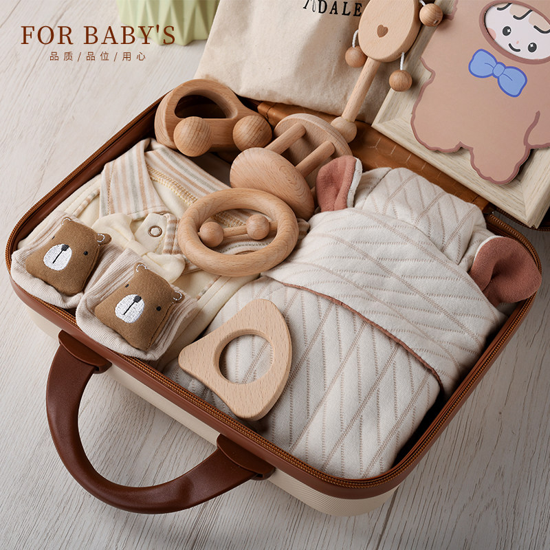 Baby Gift Box Suit Men And Women Baby Cubs Suit Wood Toys Organic Whole Cotton Suitcases Spring Summer Holiday Gifts