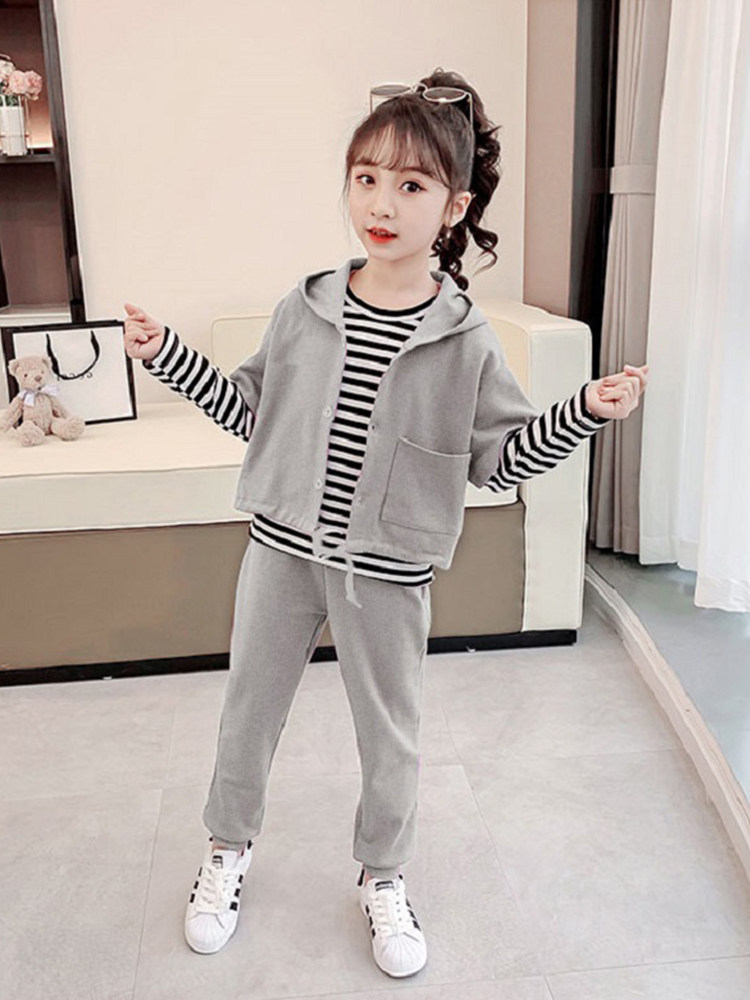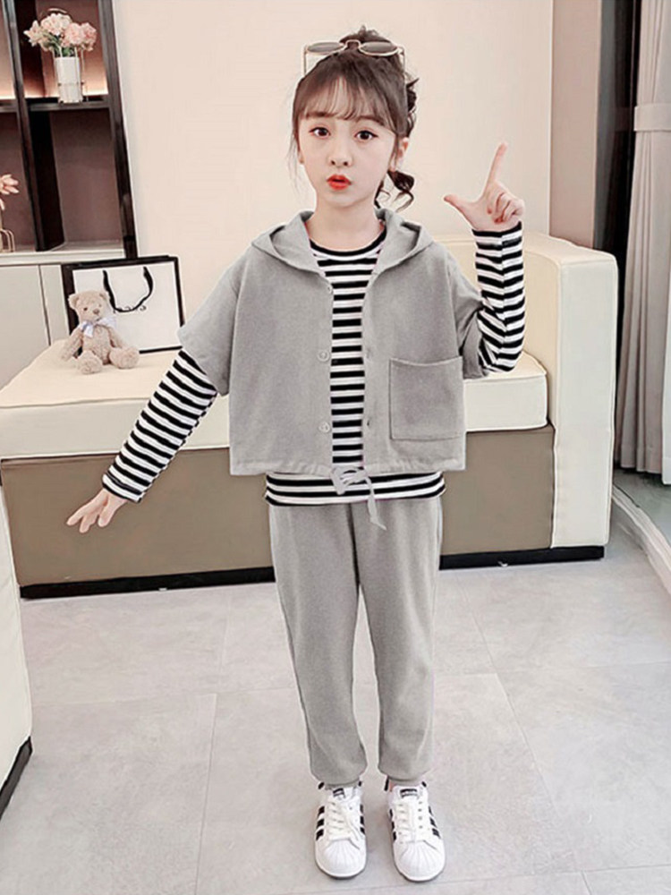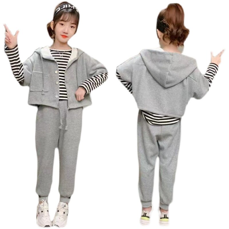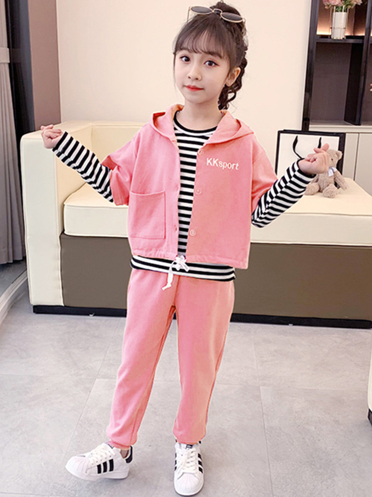 Girl's fall suit 2021 new foreign Han version Children's online red sports dress CUHK Trendy Three Sets Tide